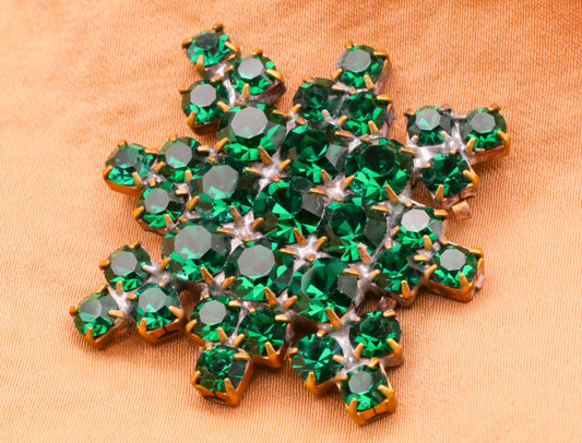 Starburst Emerald Green Czech Rhinestone Glass Metal Large Button Various 31-36mm