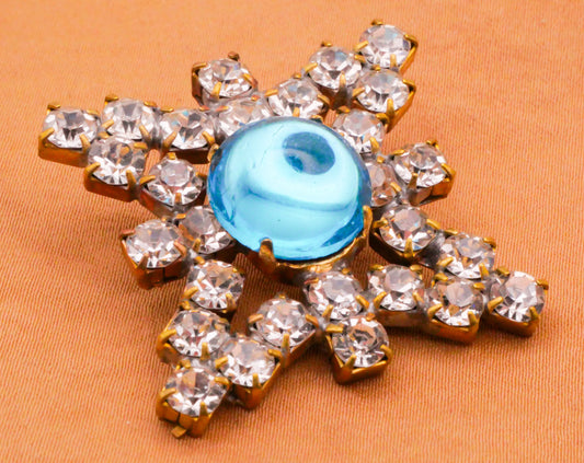 Starburst Czech Glass Rhinestone Aqua Orange Metal Large Button Various 31mm