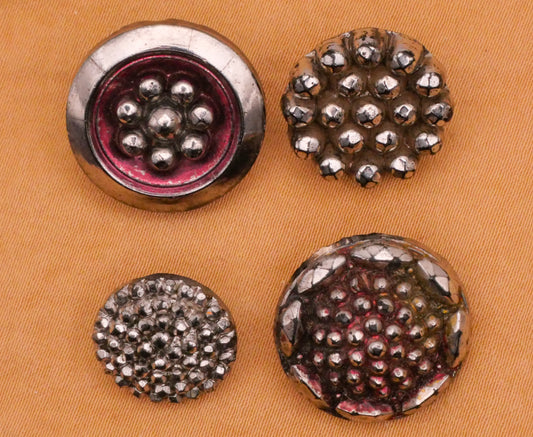 Steel Cut Look Silver Luster Black Glass Button Various 13-19mm