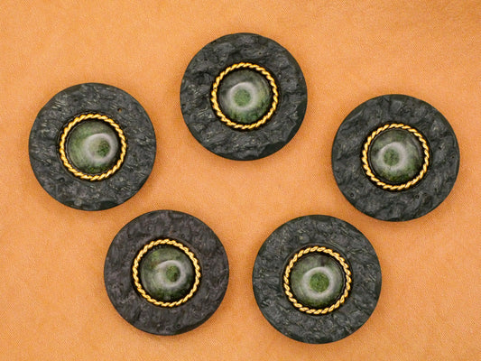 Stone Marble Look Green Gold Robe Vintage Plastic Self-Shank Button 23mm
