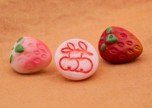 Strawberry Cherry Fruit Vintage Glass Button Various 12-14mm