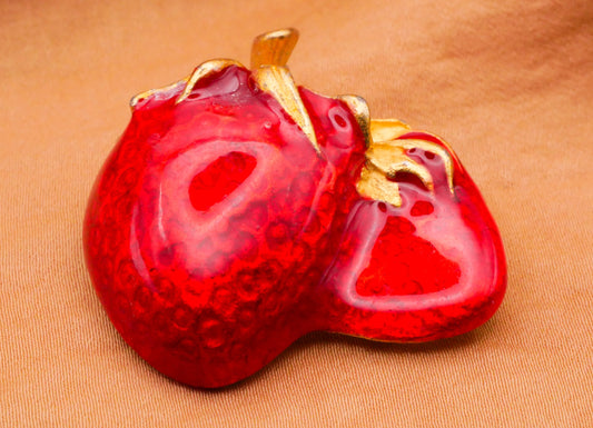 Strawberry Red Enamel Gold Metal Double-Shank Large Vintage Button 35x36mm