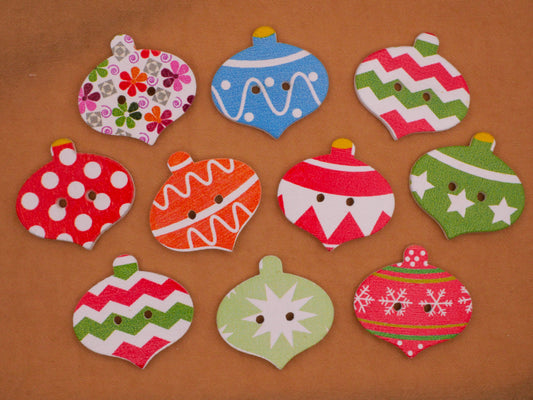 Stocking Ornament Christmas Wood Set of Ten Buttons 21-30mm