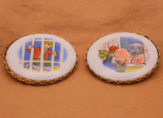 Storybook Folklore Scene Ceramic Metal Vintage Button Various 29mm