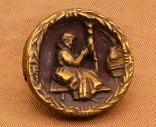 Straw Hat Bonnet Shiny Gold Brass Vintage Metal Button 23mm