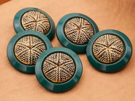 Teal Blue Green Bronze Woven Rope Look Plastic Button 23mm