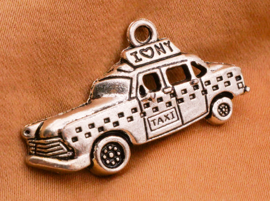 Taxi Cab I Heart NY NYC Silver Metal Set of Three Charms Embellishments 17x33mm