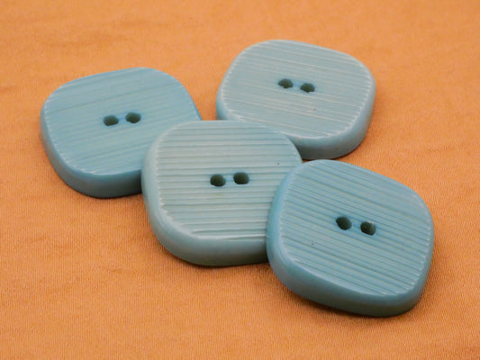 Teal Blue Green Ribbed Squarish Plastic Set of Four Buttons 24x25mm