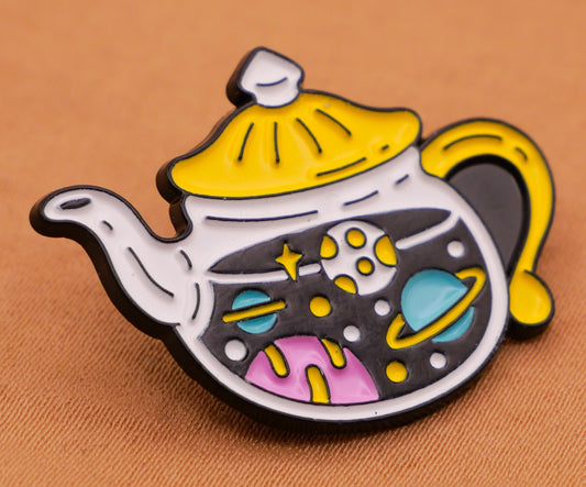Teapot Outer Space Planets Enamel Metal Button 23x30mm