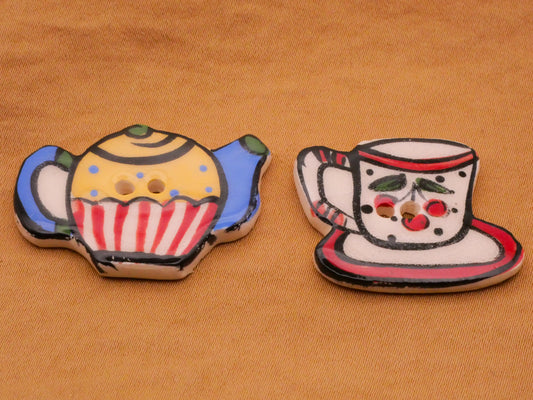 Teapot or Teacup Hand-Painted Ceramic Button Various 24-34mm