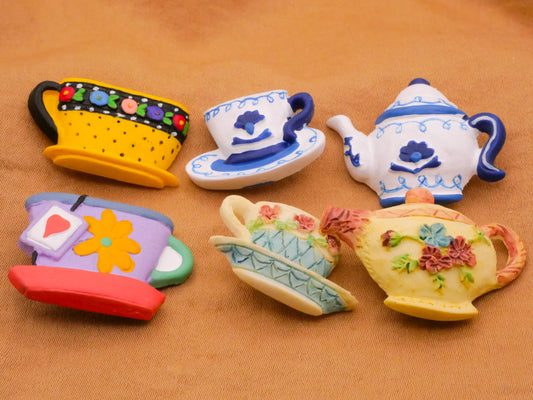 Teacup Teapot Hand-Painted Art-Stone Vintage Button Various 14-32mm