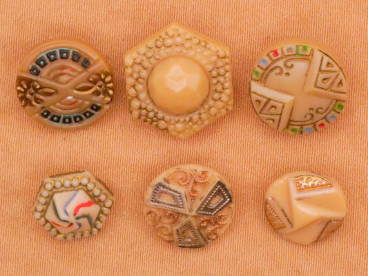 Tan Hand-Painted Vintage Glass Button Various 8-13mm