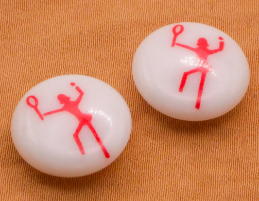 Tennis Badminton Red White Plastic Pair of Buttons 15mm