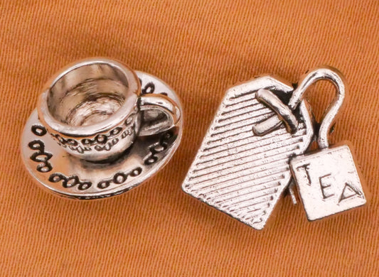 Tea and Teacup Realistic Silver Metal Pair of Buttons 14-15mm