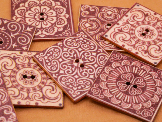 Terracotta Tile Old World Look Wood Set of Ten Buttons 30mm