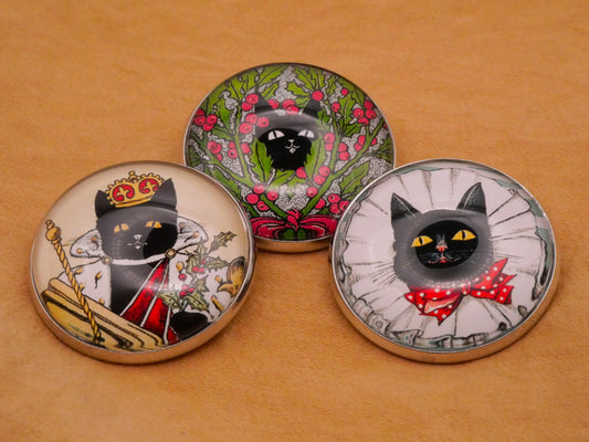 The Black Cat Magazine Illustration Glass Dome Silver Metal Button Various 27mm