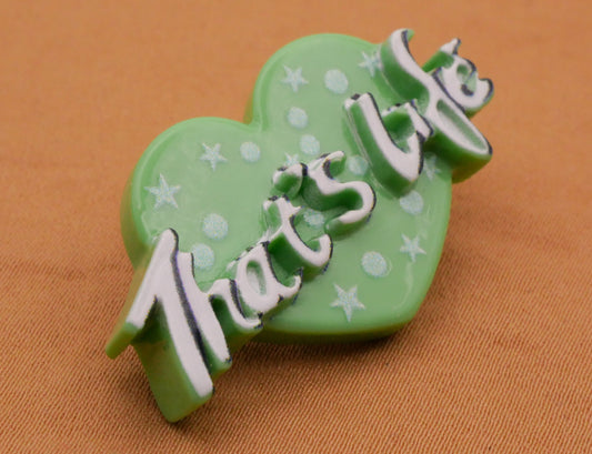 That's Life Verbal Mint Green Heart Plastic Button 20x34mm