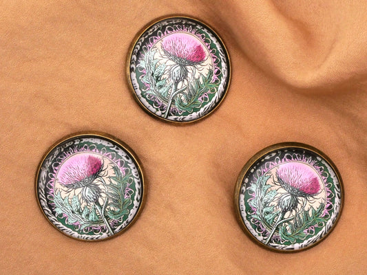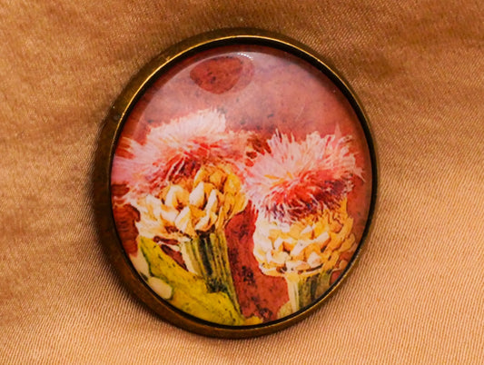 Thistle Painting Illustration Glass Dome Bronze Metal Button 28mm