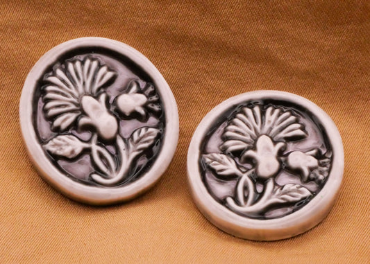 Thistle Flower Ceramic Grey Art Stone Button 21x23mm