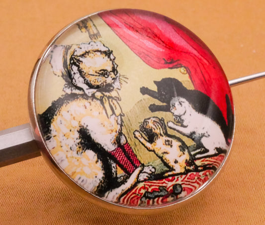 Three Little Kittens Lost Mittens Illustration Glass Dome Silver Metal Large Button 32mm