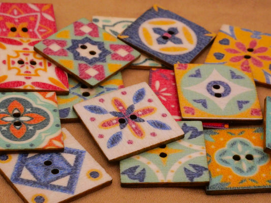 Tile Look Designs Wood Assorted Set of Ten Buttons 20mm