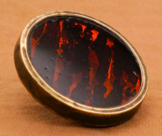 Tiger Stripe Amber Glass Brass Metal Drum Button 26mm