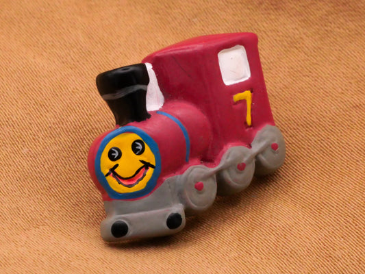 Train Engine Smiling Number Seven Red Plastic Button 18x20mm