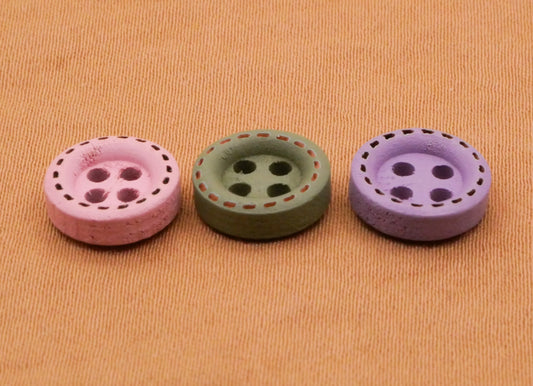 Tiny Wood Pastel Pink Green Purple Set of Ten Buttons Various 10mm