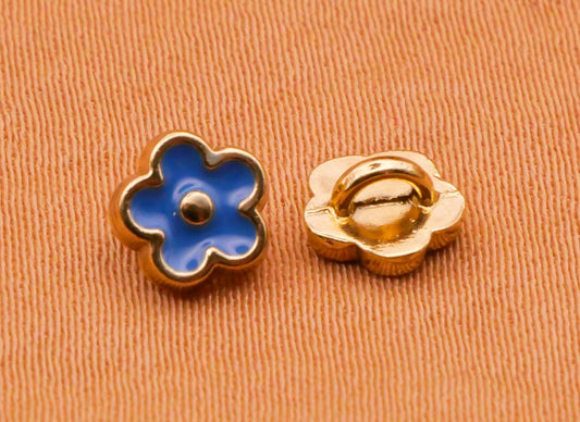 Tiny Flower Multi-Color Enamel Metallized Plastic Set of Ten Doll Buttons 6mm