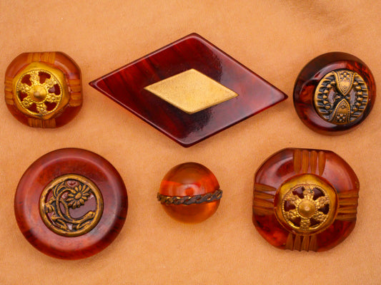 Tortoiseshell Look Root Beer Apple Juice Bakelite Gold Metal Plastic Button Various 16-51mm