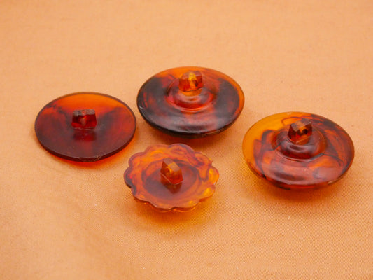 Tortoiseshell Look Vintage Plastic Set of Four Buttons 18-22mm
