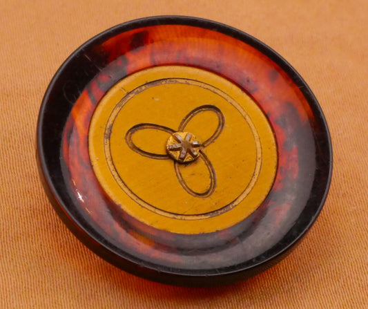 Tortoiseshell Gold Fan Triad Vintage Plastic Button 28mm