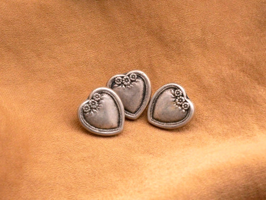 Tiny Metal Heart Pair of Buttons 11mm