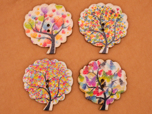 Tree Seasons Colorful Foliage Wood Sew-Thru Set of Four Buttons Various 29x30mm