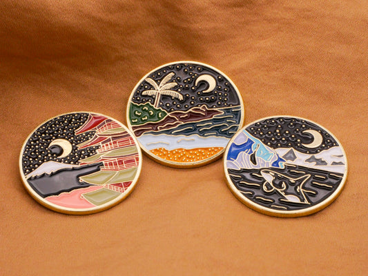 Travel Landscape Moon Enamel Gold Metal Button Various 26mm