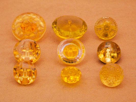 Transparent Glass Yellow Cognac Vintage Button Various 9-19mm
