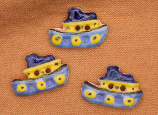 Tug Boat Hand-Painted Ceramic Sew-Thru Button 15x23mm