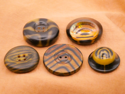 Tribal Stripe Celluloid Tight Top Glow Bubble Black Tan Plastic Button Various 29-38mm