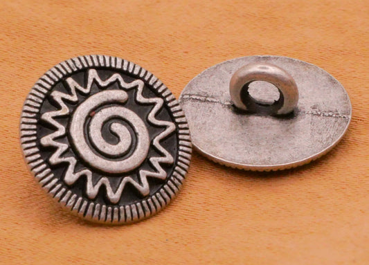 Tribal Sun Swirl Antique Silver Metal Pair of Buttons 15mm