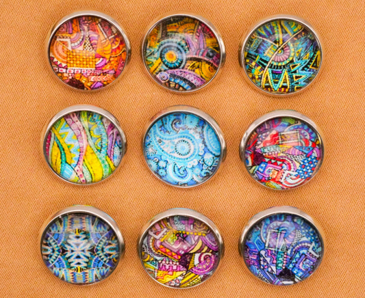 Tribal Patterns Colorful Glass Dome Silver Metal Button Various 14mm