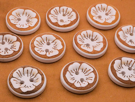 Tropical Flower White Wood Set of Ten Buttons 18mm
