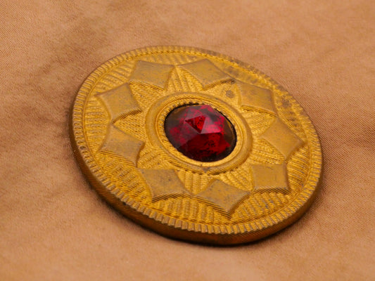 Victorian Jewel Diamond Wreath Red Glass Stone Large Metal Button 42mm