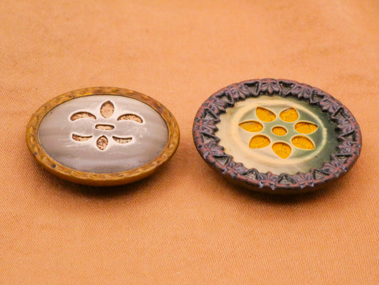 Victorian Celluloid Fleur or Flower Metal Button Various 26-28mm
