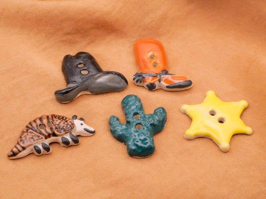 Wild West Hat Boot Armadillo Cactus Sheriff Star Ceramic Button Various 15-32mm