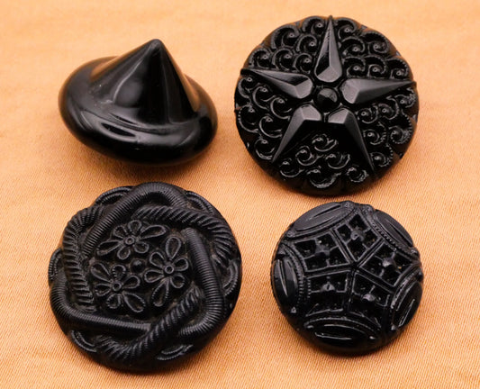 Whistle Black Glass Antique Set of Three Buttons Various 14-18mm