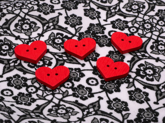 Wood Heart Sew-Thru Bright Red Set of Five Buttons 12x15mm