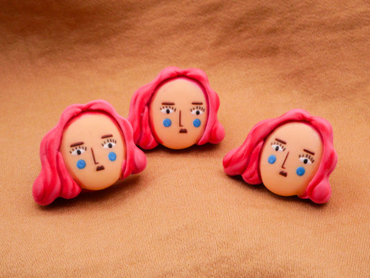 Women Portrait Faces Pink Green Hair Plastic Button Various 15-20mm