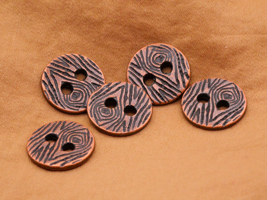 Wood Grain Design Copper Metal Set of Five Buttons 15mm