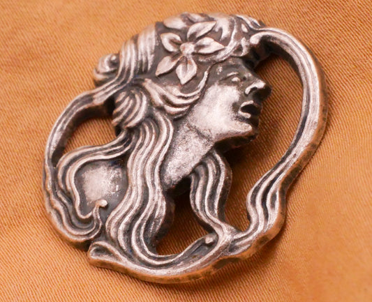 Woman Lady Art Nouveau Pewter Look Silver Metal Button 27x28mm