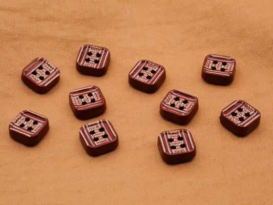 Wood Square White Tribal Design Set of Ten Buttons 9mm